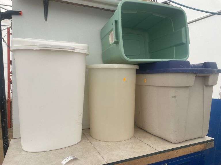 LOT 2032 - Quantity of plastic containers including garbage can