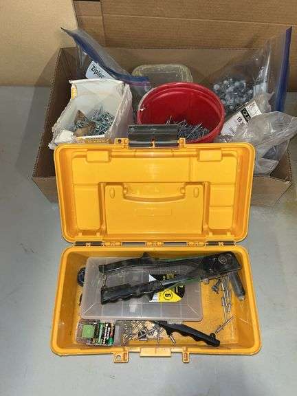 LOT 1022 - Riveter, misc screws & nails, etc
