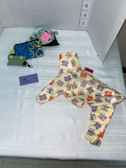 LOT 160 - Dog items, toy, snack bag, rain coat, poop bags Size Small
